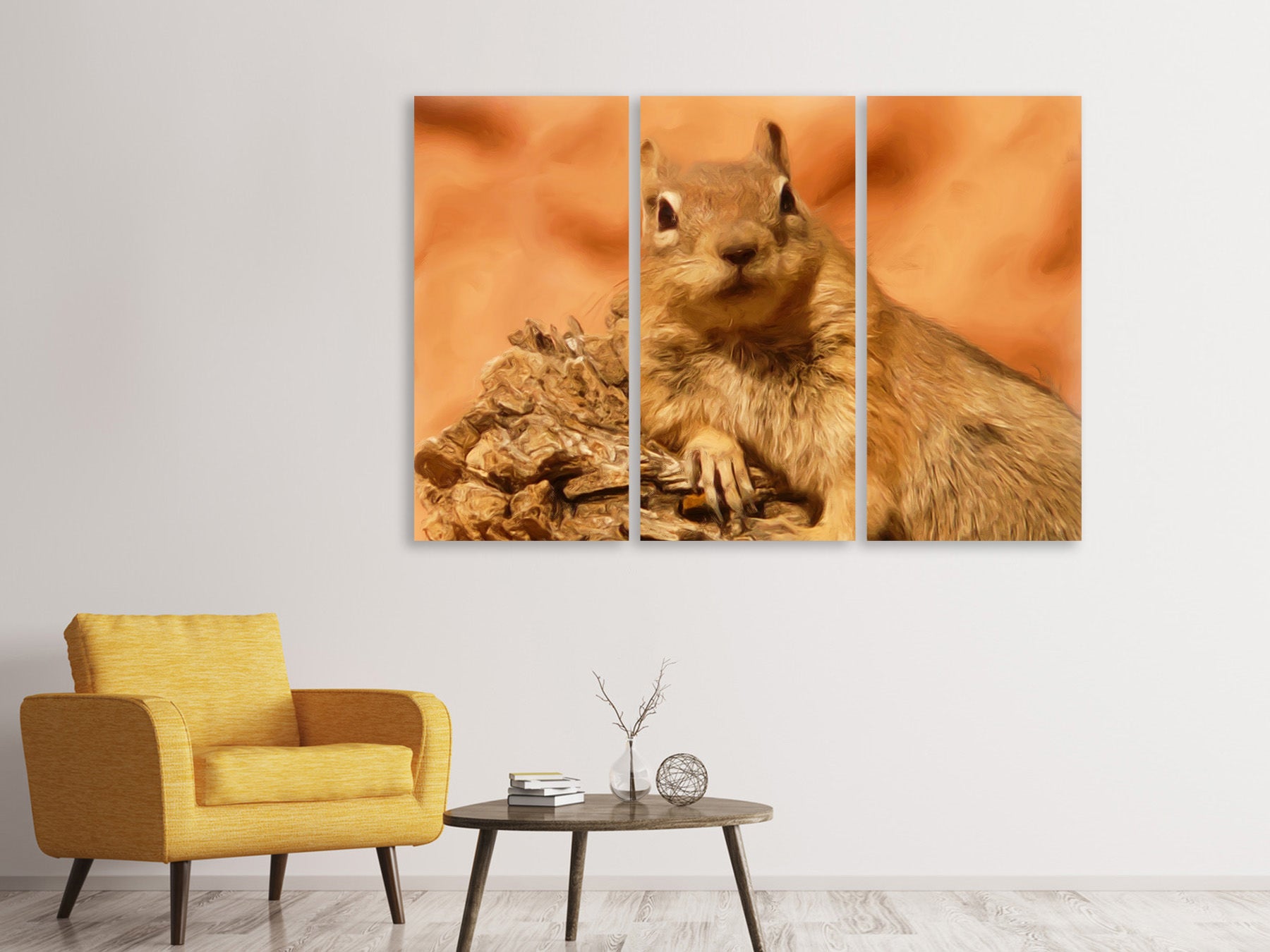 Leinwandbild 3-teilig Süsses Eichhörnchen