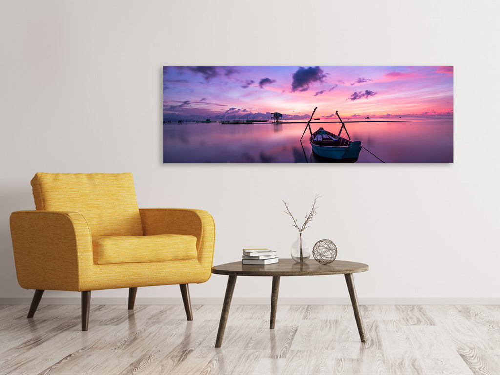 Leinwandbild Panorama Beeindruckender Sonnenuntergang am Meer