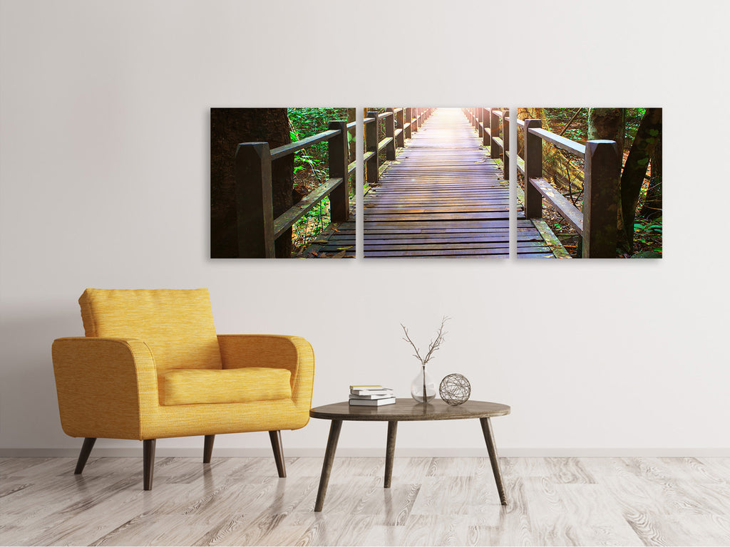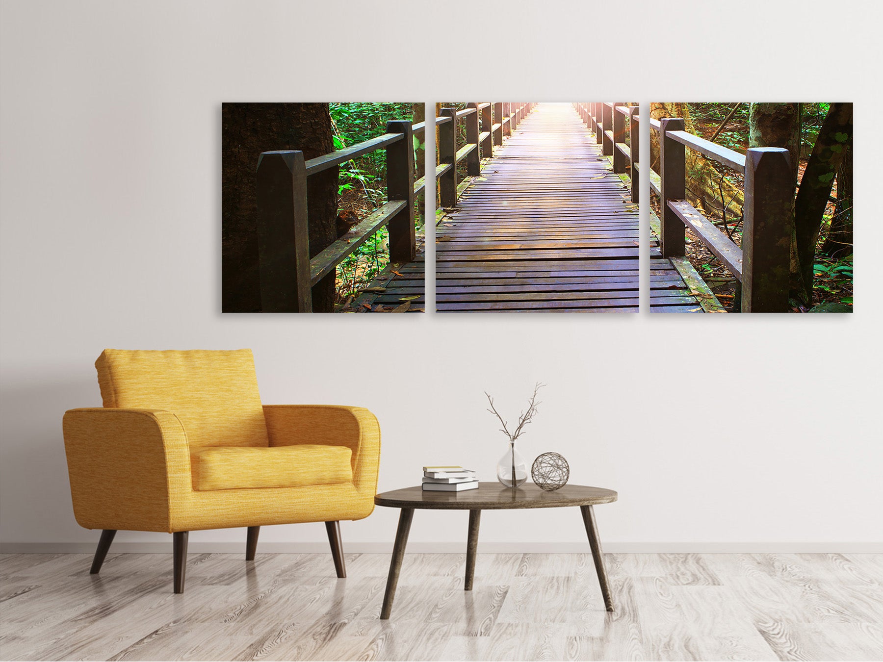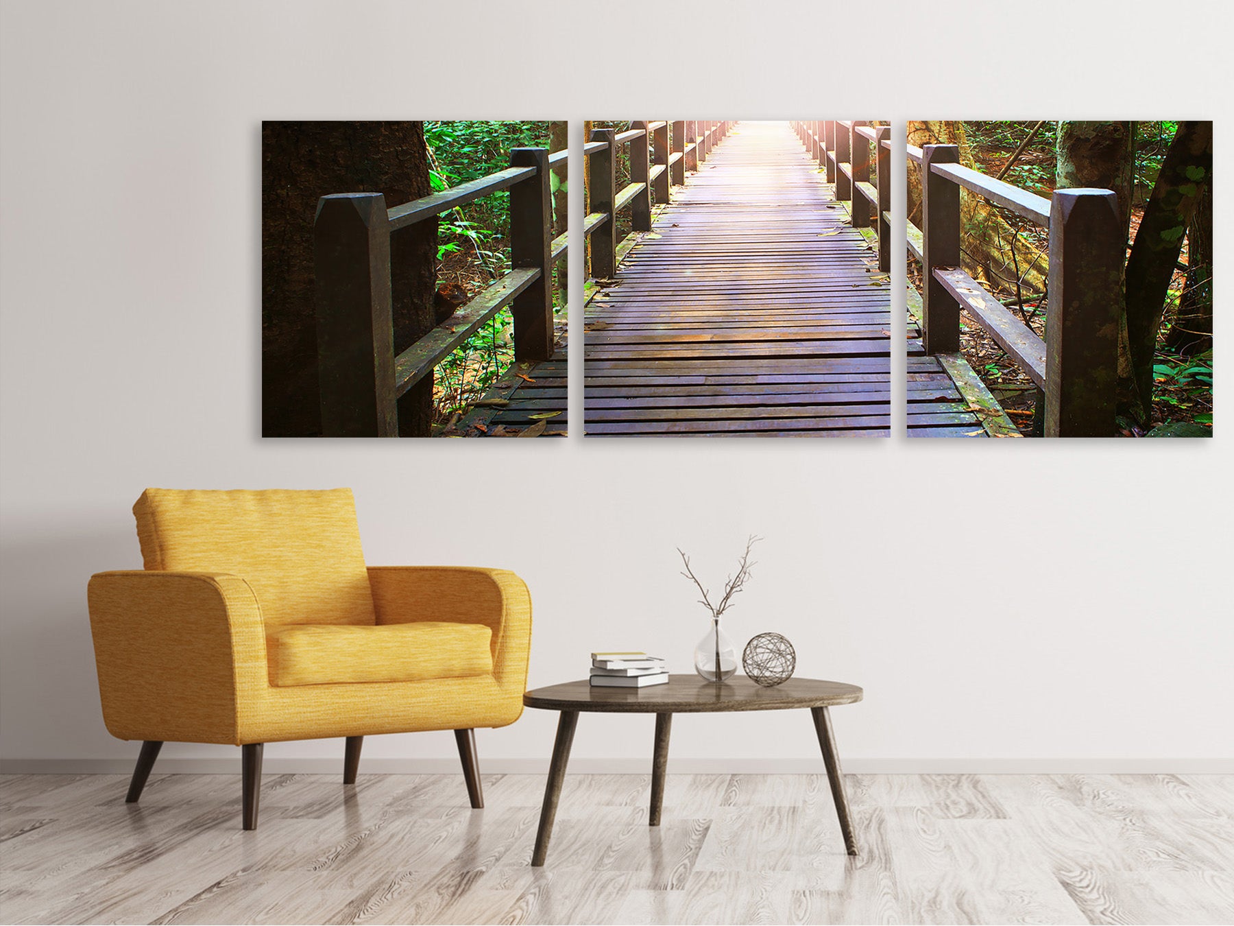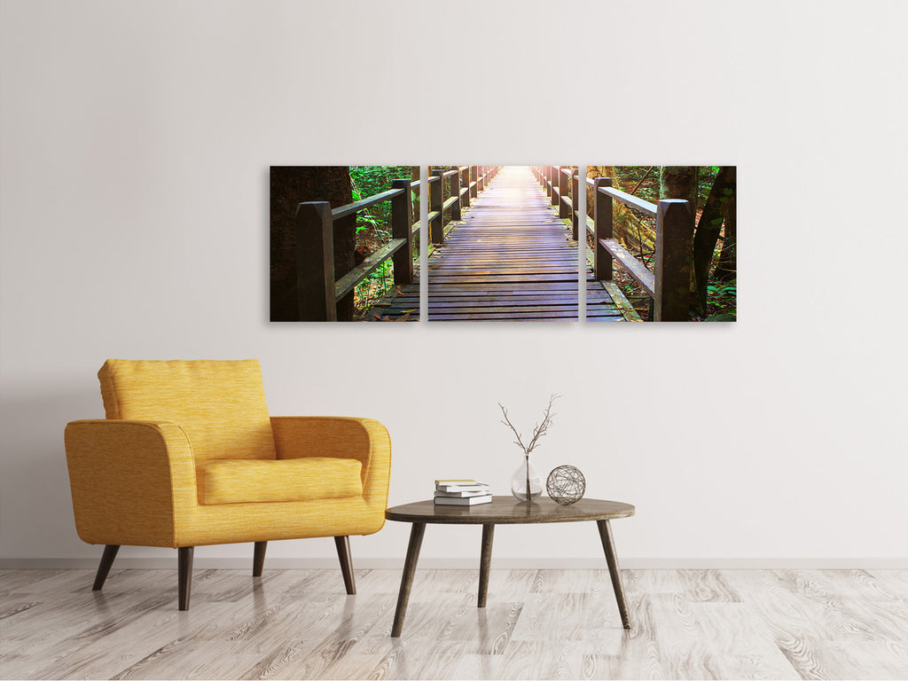 Panorama Leinwandbild 3-teilig Die Brücke im Wald