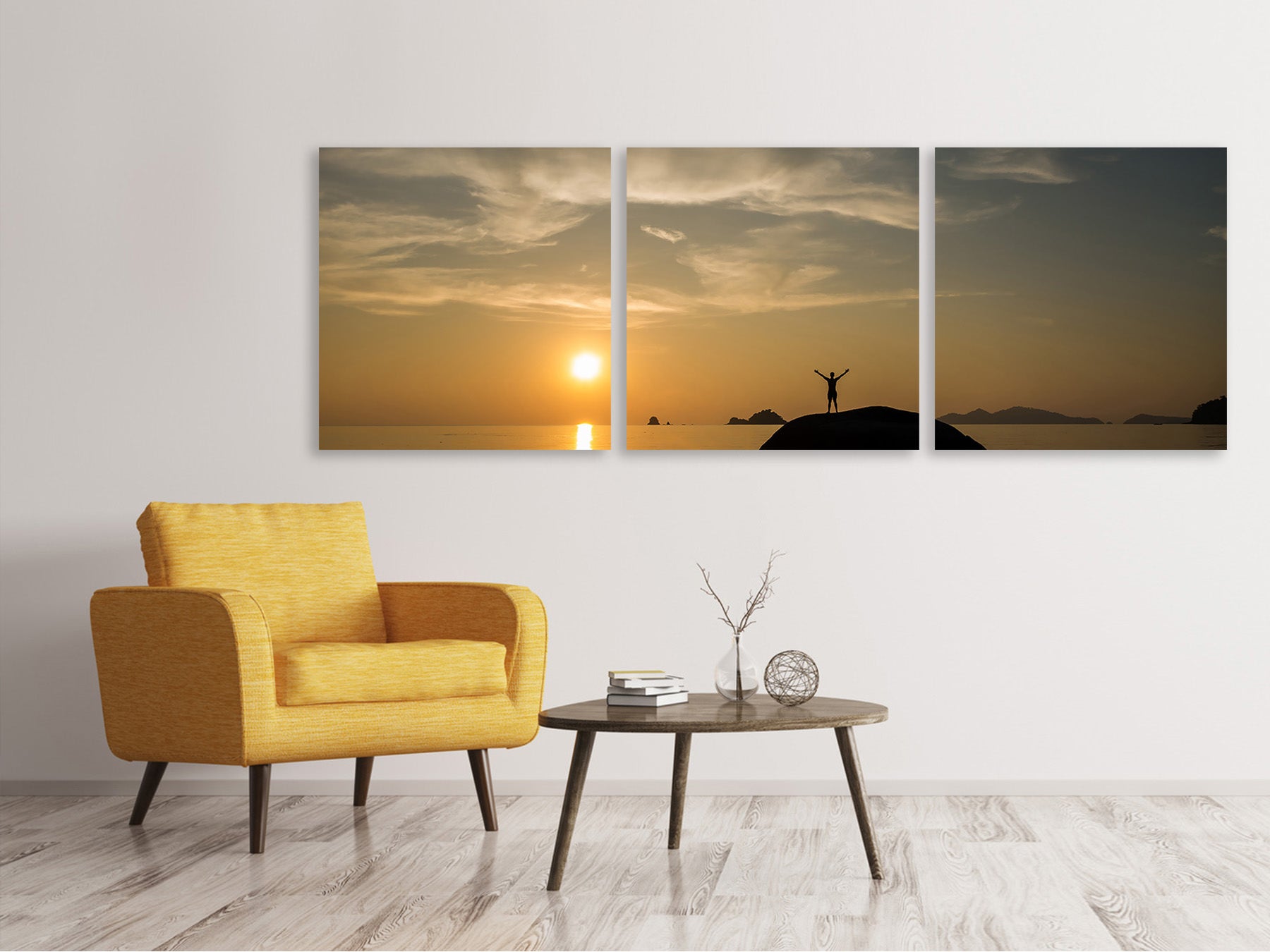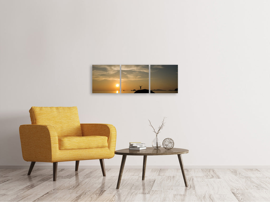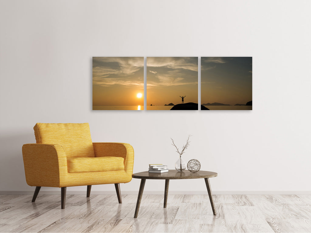 Panorama Leinwandbild 3-teilig Liebe den Sonnenuntergang am Meer