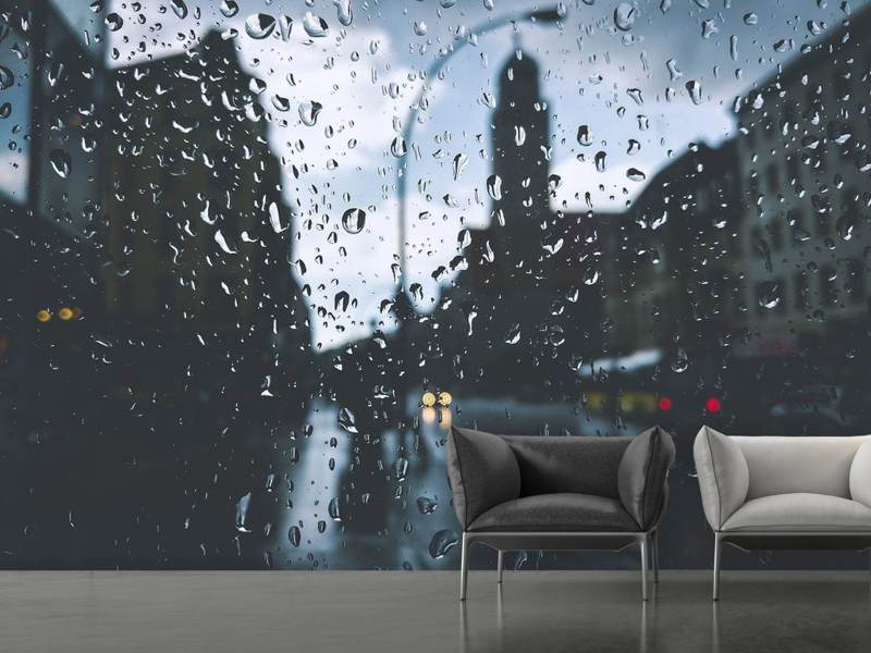 Fototapete Regentropfen an der Fensterscheibe